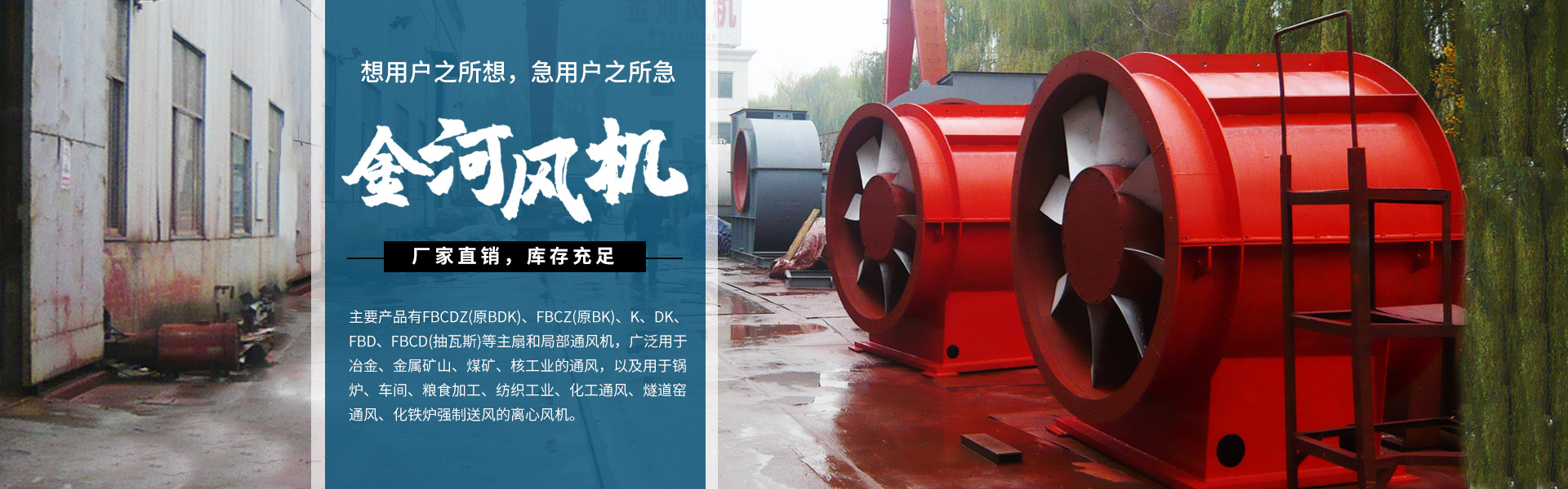 淄博金河風(fēng)機有限公司位于山東省淄博市周村區(qū)南郊鎮(zhèn)。東倚博萊高速,西臨濟青高速,南靠309國道,北傍膠濟鐵路,交通方便,通發(fā)達。我公司技術(shù)力量雄厚,制造設(shè)備精良,測試手段完善,產(chǎn)品均有生產(chǎn)許可證、煤礦礦用產(chǎn)品安全標(biāo)志證書和防爆合格證。提供70多個系列,800多種規(guī)格。主要產(chǎn)品有FBCDZ(原BDK)、FBCZ(原BK)、K、DK、FBD、FBCD(抽瓦斯)等主扇和局部通風(fēng)機,廣泛用于冶金、金屬礦山、煤礦、核工業(yè)的通風(fēng),以及用于鍋爐、車間、糧食加工、紡織工業(yè)、化工通風(fēng)、燧道窯通風(fēng)、化鐵爐強制送風(fēng)的離心風(fēng)機。